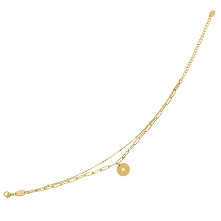 Käytännöllisen jatkoketjun ansiosta voit helposti käyttää nilkkakorua mukavuuspituudessasi, vaikka jalat ja nilkat olisivat hieman turvonneet. Kaksi erilaista ketjukuviointia tyylikkäässä kerroksellisessa lookissa korostavat tähtiriipuksen maagista karismaa.